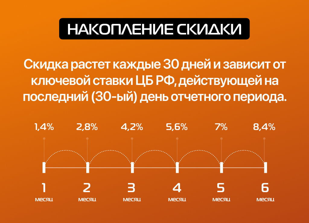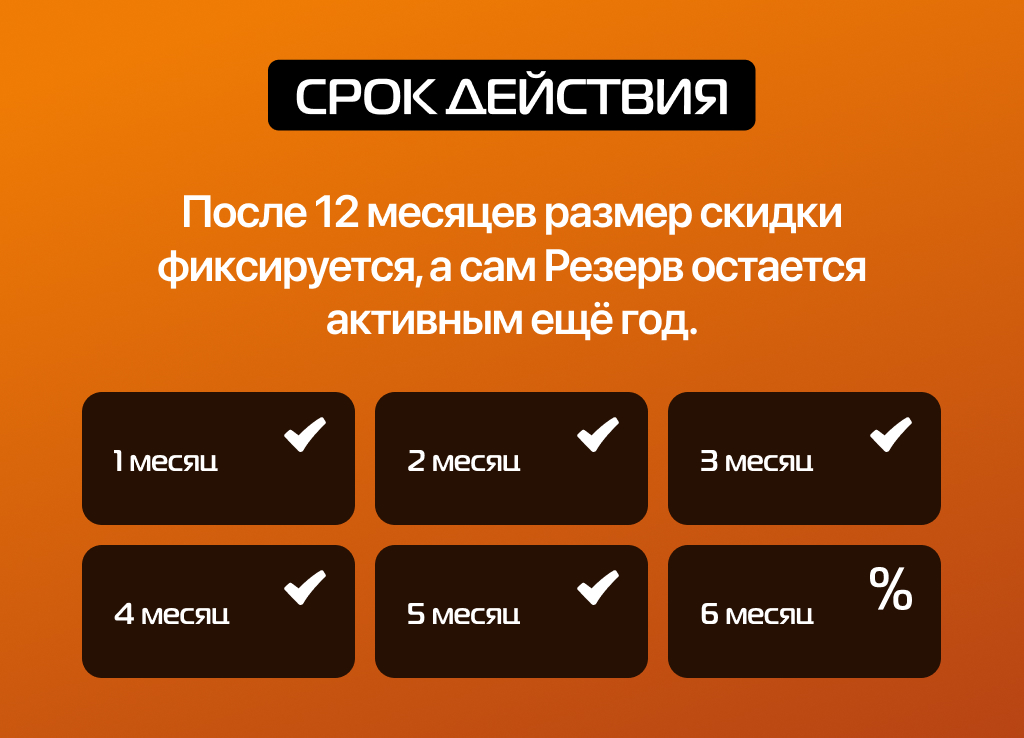 Купите Резерв в течение 180 дней, копите скидку и воспользуйтесь ею в период действия акции.