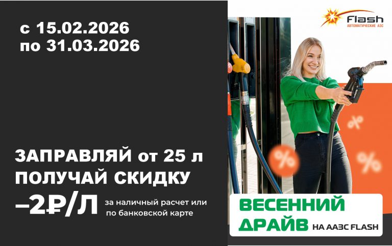 С 15.02.2026 по 31.03.2026 на всех автоматических АЗС Flash проходит акция “Весенний драйв”.